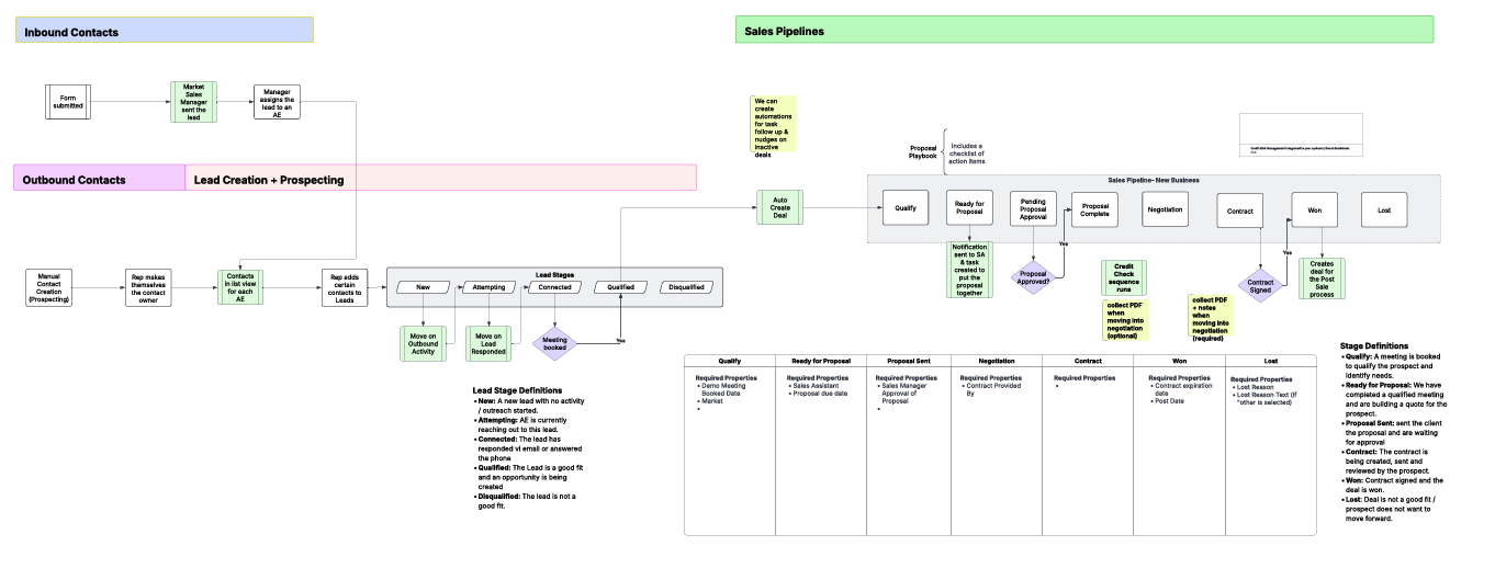 Active configuration of pipelines, automated handoffs, and Service Hub ticketing. Bulk migration of normalized spreadsheet data into the new architecture.